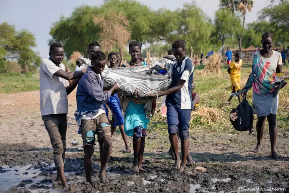 Grâce à notre fonds d’urgence, nous avons pu réagir dès le début du conflit il y a un an, en finançant 5 projets pour un montant total de 1,5 million de francs. Cette aide se concentre surtout sur les personnes réfugiées au Soudan du Sud, où l’accès humanitaire reste possible. Nos trois organisations partenaires suisses actives sur le terrain, Medair, Caritas et Vétérinaires Sans Frontières, ont pu apporter une aide d’urgence vitale pour la population. Elles fournissent de la nourriture, de l’eau, des soins médicaux, des kits d’hygiène et des aides financières ponctuelles pour répondre aux besoins les plus urgents. Elles distribuent également des articles essentiels comme des couvertures, des ustensiles de cuisine, des outils, ou encore des kits de pêche et d’agriculture afin d’assurer aux populations déplacées une source de revenu et de nourriture. Les besoins sur place restent énormes, notamment pour les femmes et les enfants non-accompagnés.